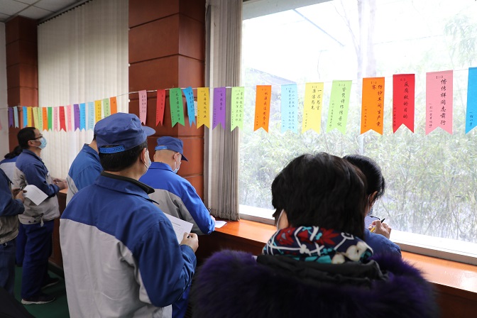 猜燈謎,與燈籠相伴而生。書于燈,映于燭,賦于形,藏于字?;顒?dòng)現(xiàn)場(chǎng),一個(gè)個(gè)精美靈動(dòng)、古色古香的燈籠呈現(xiàn)出濃濃的節(jié)日氣氛,一則則獨(dú)特的燈謎吸引了廣大黨員、職工踴躍競(jìng)猜,二百余條燈謎將黨史、廉政知識(shí)融入傳統(tǒng)民俗之中,詼諧幽默、寓意深遠(yuǎn)、耐人尋味。