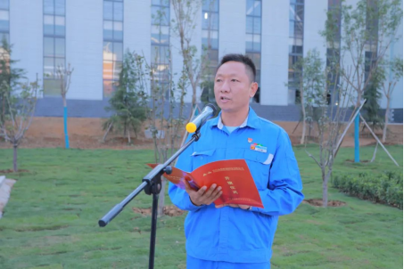 在升旗儀式上,許昌安彩董事長楊建新向在項目建設(shè)中給予支持幫助的各位領(lǐng)導(dǎo)、辛勤付出的各位同事及家屬表示衷心的感謝。他表示,許昌安彩的建設(shè)者們在公司領(lǐng)導(dǎo)的正確指引下,頂住壓力、爭分奪秒,終于實現(xiàn)滿產(chǎn)達效,跑出安彩項目建設(shè)新速度。截至目前,公司各項工序運轉(zhuǎn)正常,各項指標(biāo)均達到并超過科研設(shè)計水平。這張來之不易的“成績單”是所有許昌安彩人拼出來、干出來的,是落實安彩高科“一核四極”發(fā)展戰(zhàn)略、傳承安彩“十大精神”的集中體現(xiàn)。我們將堅持黨建領(lǐng)航、文化鑄魂,以高質(zhì)量黨建推動企業(yè)高質(zhì)量發(fā)展,堅決貫徹安彩高科指示,推動一期項目穩(wěn)定盈利,加快二期項目盡快落地,以優(yōu)異成績?yōu)樽鎳鴳c生、為黨的二十大獻禮。